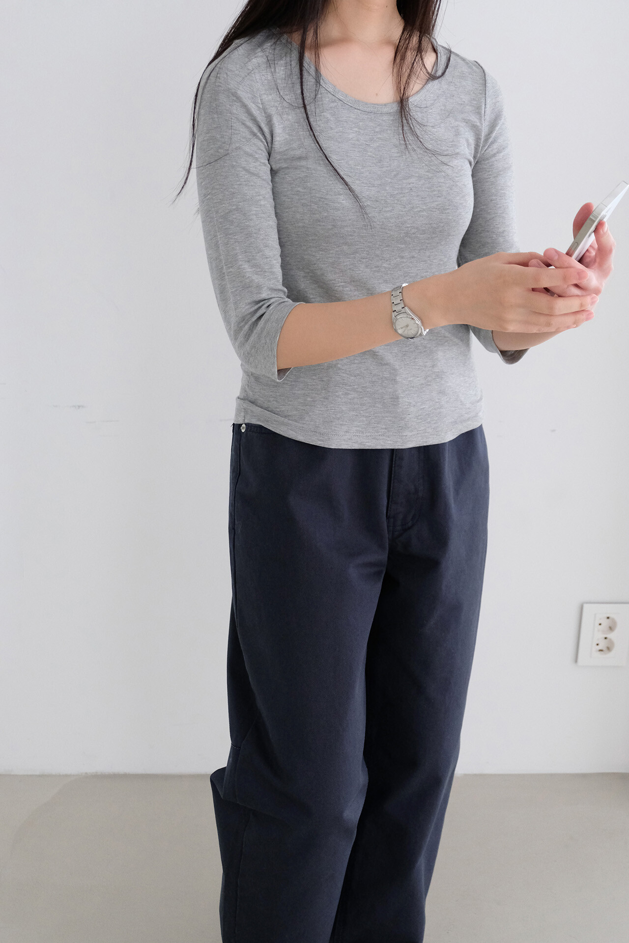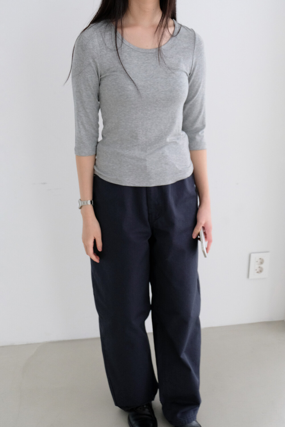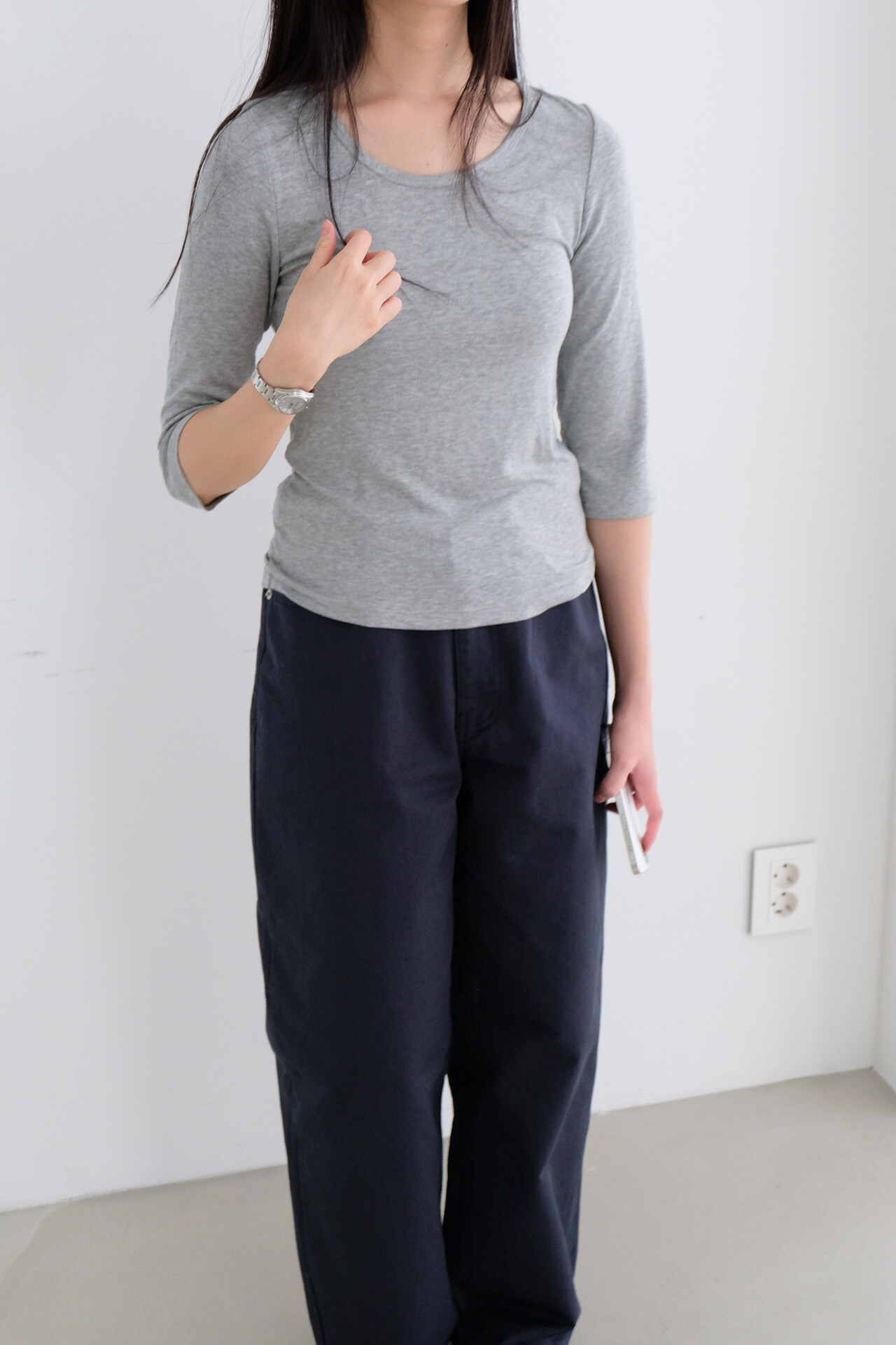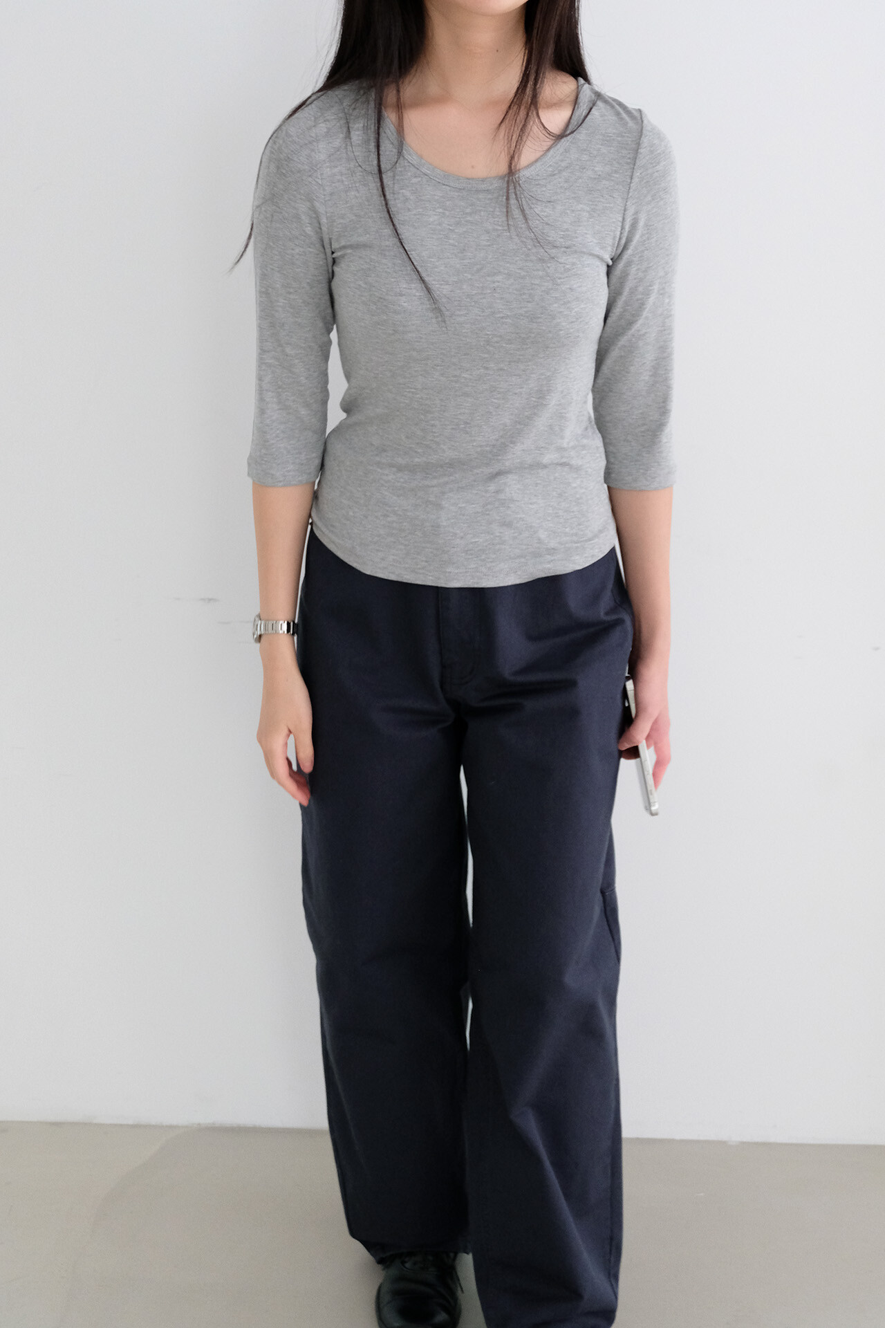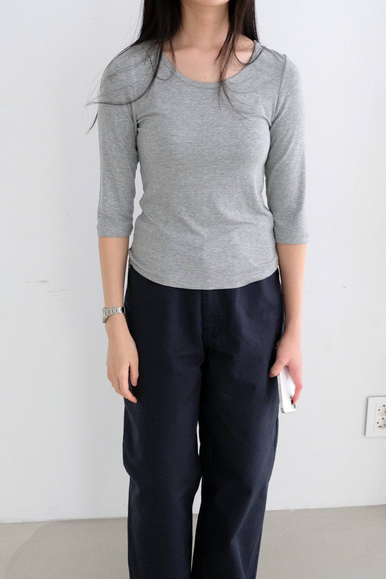 3⁄4 sleeve scoop neck tee (grey)